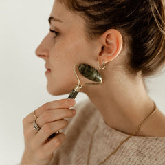 Après avoir nettoyé et tonifié votre peau, laissez quelques goûtes de votre hydratant ou sérum sur votre peau afin de bien faire glisser le rouleau de jade pour le visage.